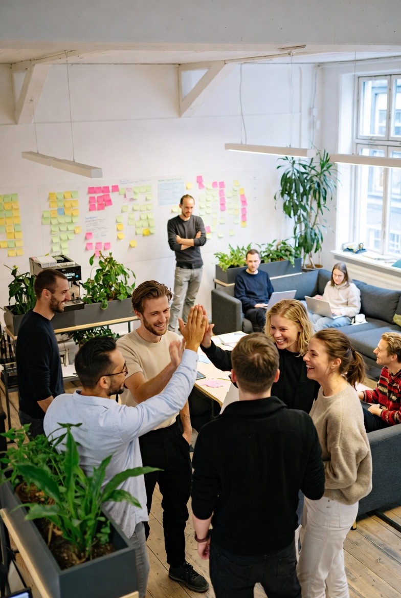 Vi er alle "hands on", og stolte av at alt bygges og utvikles her på kontoret. Vi vil gjøre dette skikkelig, så alt bygges med fremtiden i tankene.